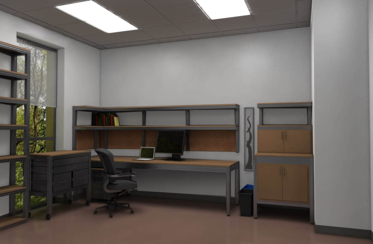 110529_progress_update_3_revised Published 2013/01/31 at 1800 × 1178 Design of custom office furniture made of 8020 aluminum frame and MDF.